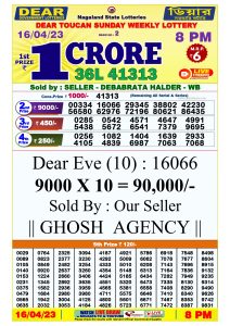 Nagaland State Dear Lottery 16-April-2023 8PM Draw Result