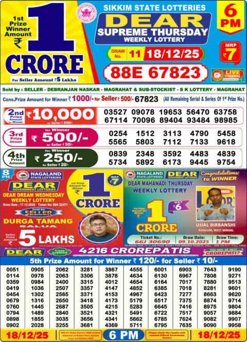 Nagaland Dear Lottery Result Today 18.12.25 8 PM Live