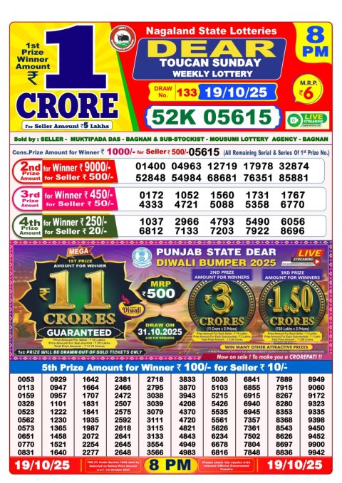 Nagaland Dear Lottery Morning Result 19.10.25 1 PM