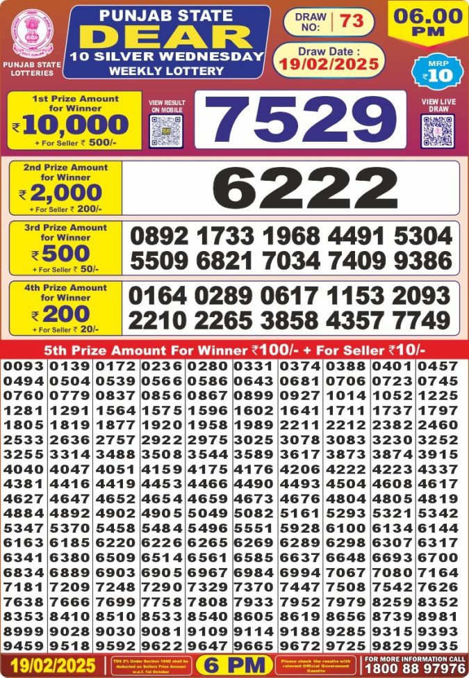 Punjab State Dear 10 Lottery Result 19.2 2025