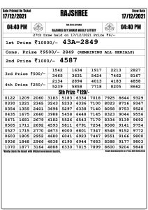 Rajshree Day Shukra Weekly Lottery Result 17.12.2021